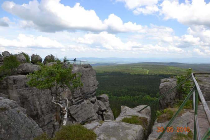 Pierwszego dnia, po wczesnej pobudce, skierowaliśmy się do Srebrnej Góry, gdzie mieliśmy okazje zwiedzić Fort Donjon. Wspaniała pogoda umożliwiła nam zobaczenie przepięknej panoramy Gór Opawskich oraz Masywu Śnieżka. W drugiej części dnia pokonaliśmy ponad 600 kamiennych stopni, aby dostać się malowniczy na punkt widokowy Gór Stołowych - Szczeliniec (919 m. npm.).