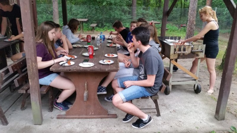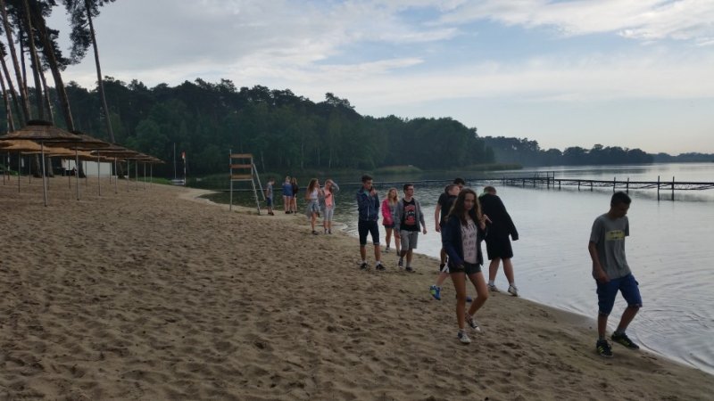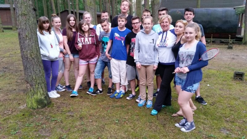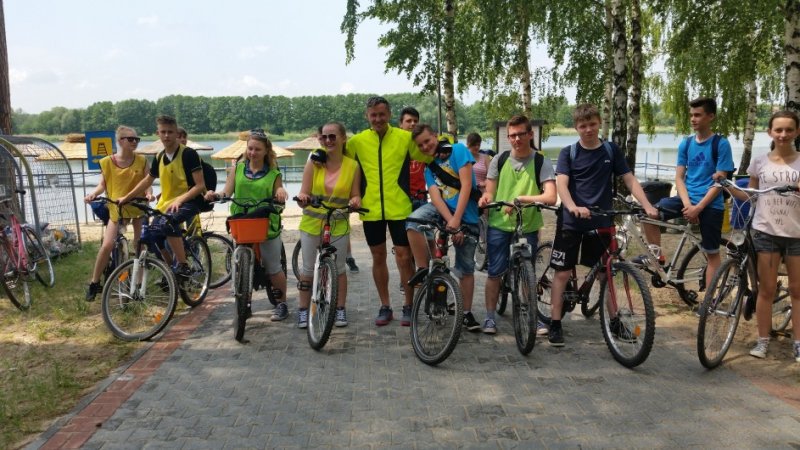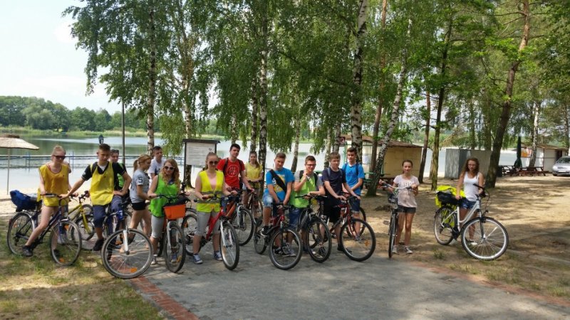 W dniach 30-31 maja 2016r. wraz z wychowawczynią Dorotą Ciesielską i nauczycielem wychowania Piotrem Kozaneckim my – uczniowie klasy III b gimnazjum wybraliśmy się na rowerach na biwak do Gołuchowa. Choć pogoda nas nie rozpieszczała i przejazd rowerami stał pod znakiem zapytania ( do 6 rano lało „ jak z cebra”), do Gołuchowa dojechaliśmy szczęśliwie, bez deszczu, nawet w promieniach słońca. Tempo było dostosowane do wszystkich uczestników, wiec dojechaliśmy bez większego zmęczenia. Na miejscu zakwaterowaliśmy się i z wdzięcznością odbieraliśmy nasze bagaże, które dowiózł nam tato Patrycji ( po które również przyjechał na drugi dzień). W czasie wolnym pograliśmy w siatkówkę, piłkę nożną, badmintona. Po obiedzie plany pokrzyżował nam deszcz i nie udało się zwiedzić drewnianego kościoła, zabytku klasy „0” w Kucharkach oraz kościoła pw. Św.Bartłomieja oraz dworu i parku dworskiego w Kucharach . W lekkim „kapuśniaku” pospacerowaliśmy nad jeziorem i zrobiliśmy małą próbę poloneza na gołuchowskiej tamie. Wieczorem bawiliśmy się przy wspólnym grillu, gdzie dołączyła do nas nasza koleżanka Iza wraz z rodzicami. Ta noc dla niektórych z nas trwała bardzo krótko, ale śniadanie szykowaliśmy ochoczo, bo po nim czekała nas wyprawa do parku - arboretum przy gołuchowskim zamku. Tam zostaliśmy podzielenie na grupy i otrzymaliśmy questy polegające na wędrówce po parku i rozwiązywaniu zadań i zagadek, które doprowadziły nas do skrzyni ze skarbem. Odcisk pieczęci – skarbu był nagrodą za uczestnictwo w zabawie. Dziewczęta wędrowały śladami Izabelli z Czartoryskich Działyńskiej, wielkiej miłośniczki sztuki, twórczyni pierwszego prywatnego muzeum w Gołuchowie z wyjątkową kolekcją waz greckich. Chłopcy natomiast wędrowali trasą, na której można było spotkać ciekawostki dendrologiczne. Mała rywalizacja pozwoliła dość szybko wykonać zadania i dzięki temu udało nam się powrócić przed deszczem do Stawiszyna. Niewyspani i zmęczeni, ale szczęśliwi wróciliśmy do domu.