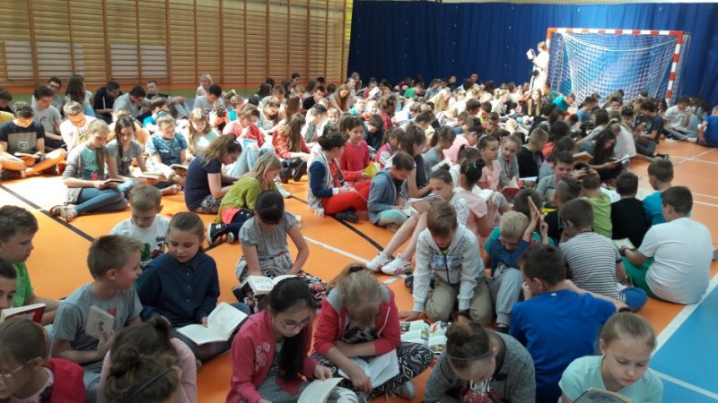 inicjowanie mody na czytanie książek. Uczniowie i nauczyciele z całej szkoły
