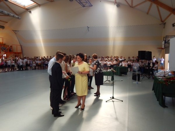 odbyło się uroczyste zakończenie roku szkolnego. Podczas uroczystego spotkanie pani dyrektor Joanna Woszczyk wręczyła