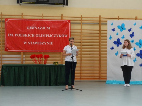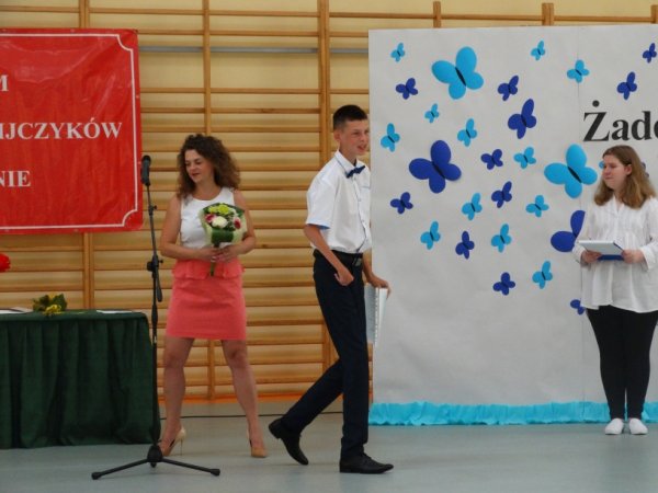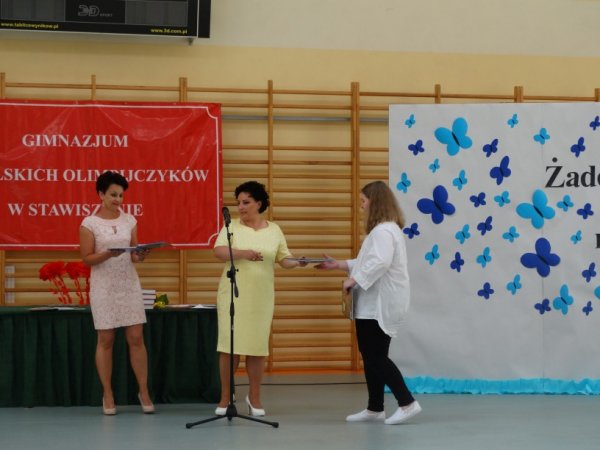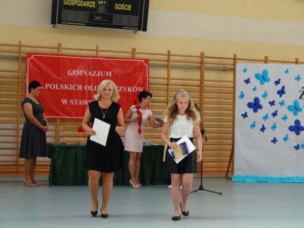 szkoły pani Joanna Woszczyk wręczyła uczniom dyplomy wzorowego ucznia oraz