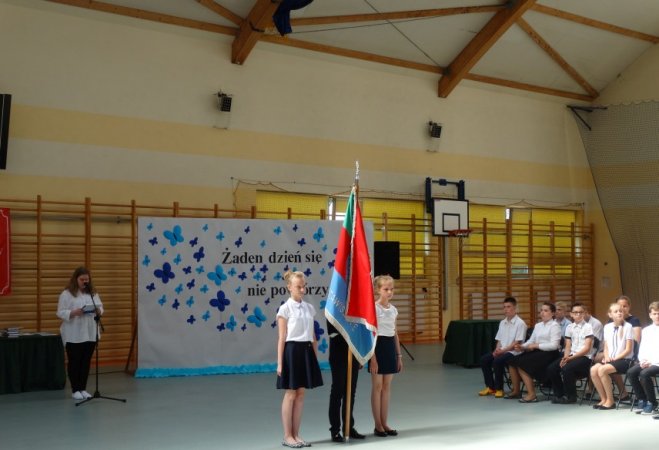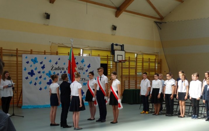 absolwentów Szkoły Podstawowej im. Wincentego Pola w Stawiszynie. Dyrektor