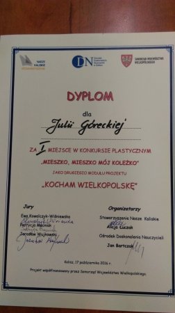 I miejsce w Rejonowym Konkursie Plastycznym
