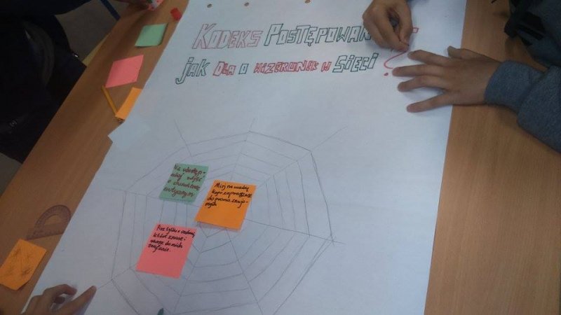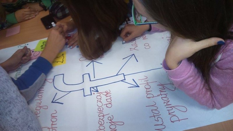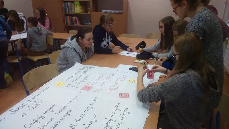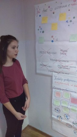 Podczas warsztatów gimnazjaliści rozmawiali na temat ochrony swojego wizerunku w siecio zagrożeniach związanych z beztroskim korzystaniem z Internetu, o bezpieczeństwie w cyberprzestrzeni i o tym, jak reagować na zagrożenia związane z cyberprzemocą, gdzie szukać pomocy. Uczniowie gimnazjum, pracując w grupach, wypracowali również kodeks postępowania zwany netykietą dotyczący tego, jak dbać o swój wizerunek w sieci. Każda z grup prezentowała efekty swojej pracy na forum. Podczas spotkania rodzice uczniów Zespołu Szkół byli zainteresowani wiadomościami dotyczącymi e-zagrożeń. Po spotkaniu dzielili się swoimi refleksjami związanymi z obecnością ich dzieci w sieci. Warsztaty były również okazją do tego, aby pokazać uczniom, jak można korzystać z sieci w twórczy sposób.