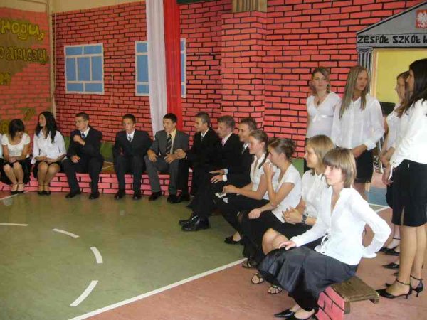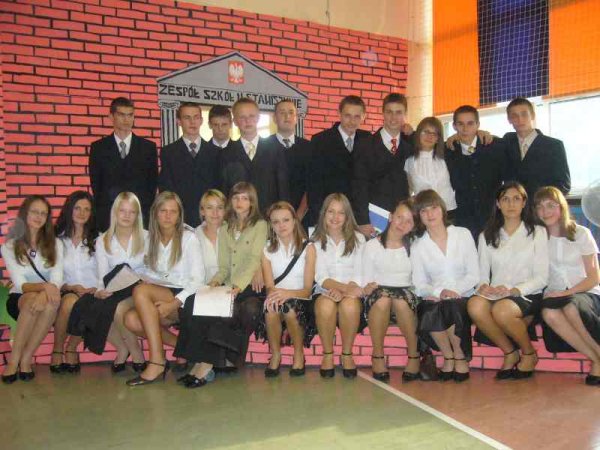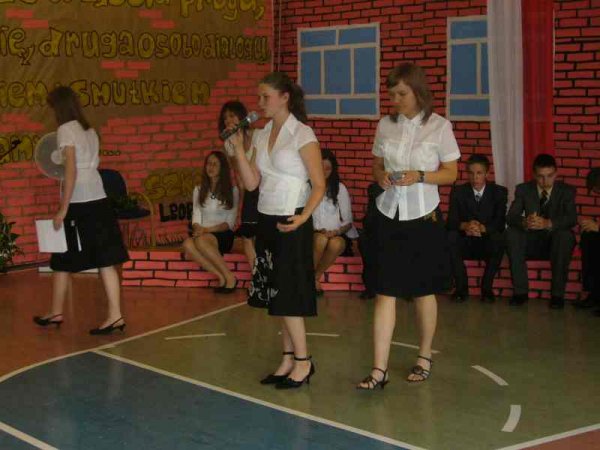 Część artystyczną absolwenci przygotowali pod kierunkiem swoich wychowawców: pani Leonardy Blewąskiej, pana Andrzeja Liberskiego oraz pani Aleksandry Wojciechowaskiej, która opracowała układ choreograficzny poloneza zaprezentowany podczas balu gimnazjalistów w dniu 20 czerwca br. |