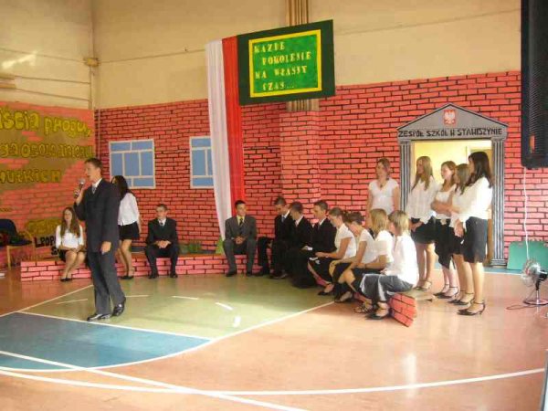 W pożegnaniu ze stawiszyńskim gimnazjum towarzyszyli uczniom wychowawcy, nauczyciele, katecheci, pracownicy szkoły, rodzice oraz zaproszeni goście: burmistrz Stawiszyna pan Robert Jarzębski i ksiądz proboszcz Józef Posłuszny.