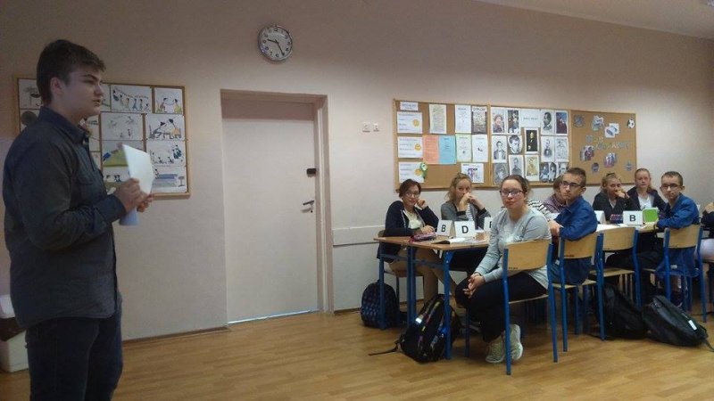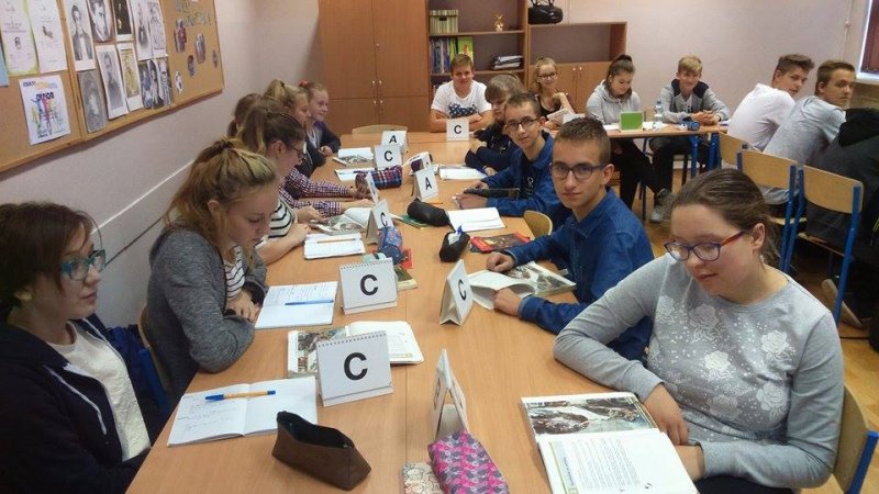 Zaczęło się od odwróconej lekcji, a przeszliśmy do metody "uczymy innych" - Błażej Sobczak i Artur Kaźmierczak - uczniowie Gimnazjum im. Polskich Olimpijczyków w Stawiszynie - poprowadzili w swojej klasie III b lekcję, podczas której ich koleżanki i koledzy opisywali dzieło Michała Anioła "Stworzenie Adama". Na uwagę zasługuje fakt, iż Artur i Błażej byli nie tylko bardzo dobrze przygotowani pod względem merytorycznym, skorzystali z materiałów przygotowanych przez polonistkę Joannę Kostrzewę, jak i z tych, do których dotarli samodzielnie, ale również pod względem metodycznym; chłopcy podali cel lekcji, a podczas zajęć monitorowali stopień jego osiągnięcia. Uczniowie klasy III b bardzo aktywnie pracowali w parach i grupach, podsumowali lekcję refleksją na temat tego, czego nauczyli się podczas zajęć. Młodzi prowadzący nie zapomnieli również o kryteriach sukcesu do lekcji. Budujące jest to, jak naturalne dla koleżanek i kolegów Artura i Błażeja było uczenie się od rówieśników, czerpanie z ich wiedzy - zgodnie z czwartą strategią oceniania kształtującego.