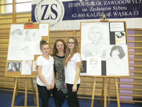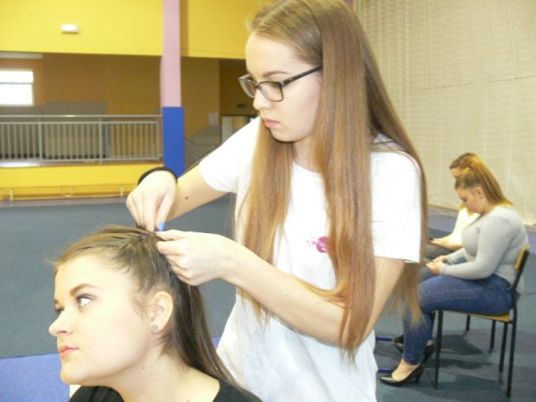 artystycznie uczennica klasy III a gimnazjum Klaudia Kołodziejczak zajęła I miejsce. Nagrodzona fryzura nazwana „Wodospad”,