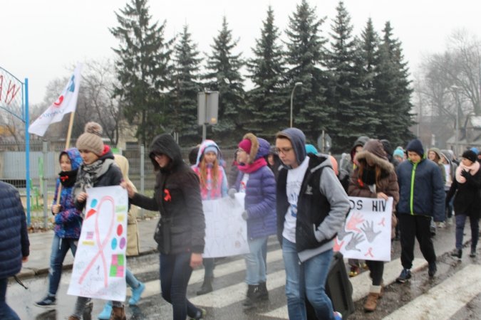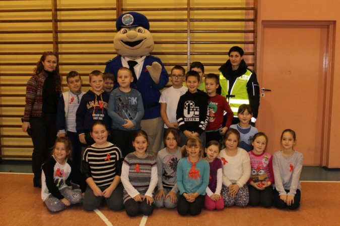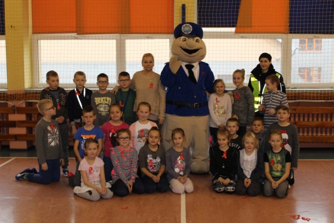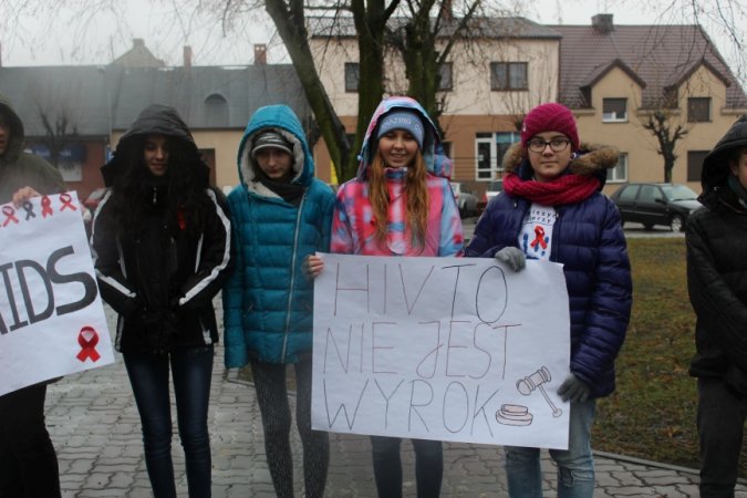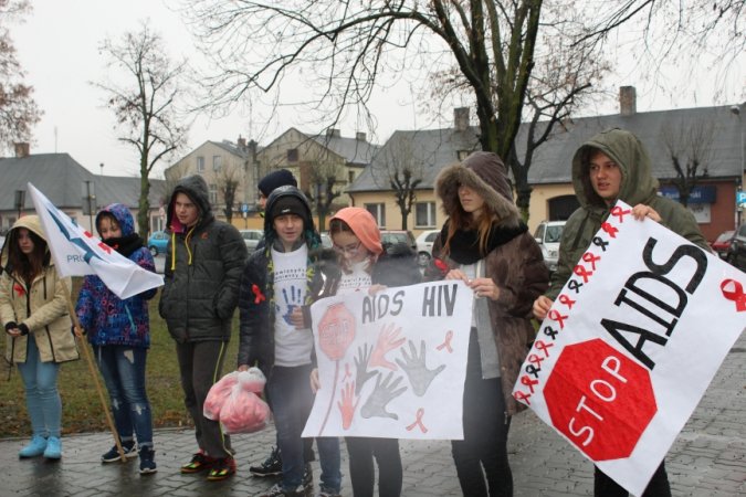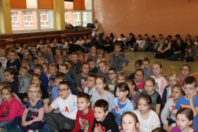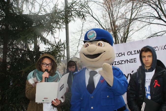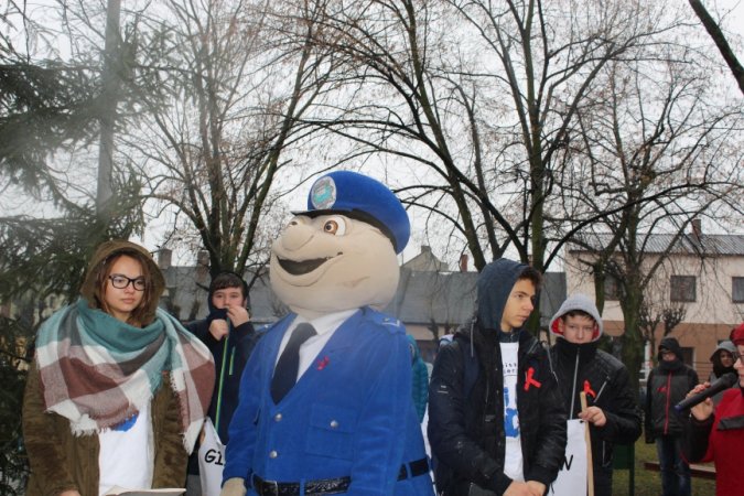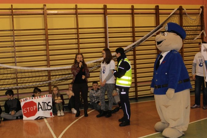 Happening edukacyjno-profilaktyczny z okazji Światowego Dnia Aids z udziałem Pyrka w Stawiszynie