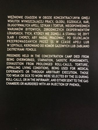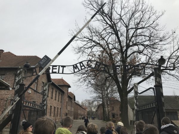 Zwiedzanie Auschwitz-Birkenau – niemieckiego, nazistowskiego, koncentracyjnego obozu zagłady - rozpoczęliśmy od bramy z napisem: "Arbeit macht frei" Otrzymaliśmy specjalne słuchawki i odbiorniki, aby wyraźnie słyszeć przewodnika. Podczas zwiedzania dowiedzieliśmy się, jak traktowano więźniów i jak pozbawiano ich godności, odzierano z człowieczeństwa. Zobaczyliśmy, w jak nieludzkich warunkach więźniowie byli przetrzymywani, jak wyglądało życie w obozie. Tragizm życia więźniów podkreślały ekspozycje przedstawione w muzeum: zdjęcia, filmy, ubrania... Pomogły nam one wyobrazić sobie ogrom bólu, który był udziałem pomordowanych. Duże wrażenie wywarły na nas ruiny i resztki baraków mieszkalnych w Birkenau.