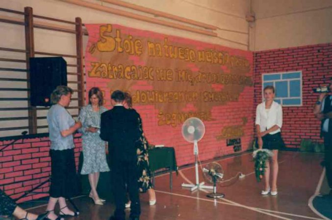 Część artystyczną szóstoklasiści przygotowali pod kierunkiem swoich wychowawców. Uczniowie zaprezentowali ciekawy i barwny program, na który złożyły się wiersze, piosenki i tańce. Rodzice absolwentów zaprosili nauczycieli, gości i uczniów na poczęstunek, po którym dziewczeta i chłopcy bawili się przy muzyce dyskotekowej. |