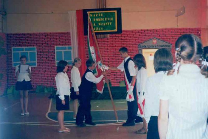 W częsi oficjalnej zabrali głos: dyrektor szkoły mgr inż. Grazyna Galant, burmistrz Satwiszyna, rodzice, nastapiło także przekazanie sztandaru szkoły przedstawicelom klas piatych oraz złożenie ślubowania przez absolwentów.