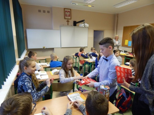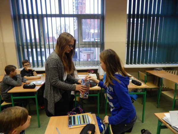 Wolontariuszami byli: Maria Gołdyn (kl. III a), Piotr Krzyżaniak (kl. VI b) i Weronika Kałużna (kl. II a G).