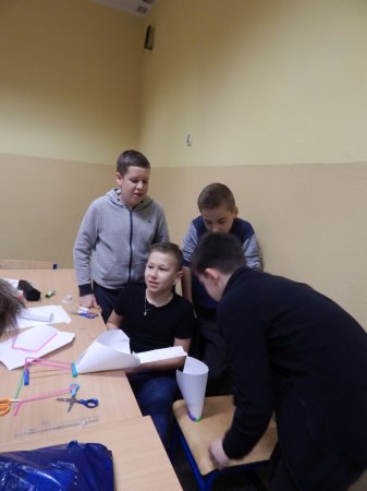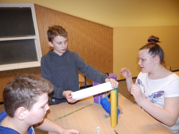 W wydarzeniu wzięli udział uczniowie klas VI. Po powitaniu uczniowie udali się do świetlicy, aby zmierzyć się z pierwszym zadaniem na kreatywność – zbudowaniem zjeżdżalni z papieru, rurek, plasteliny, kleju i spinaczy. Było to zadanie, które wymagało nie tylko umiejętność technicznych, ale i pomysłowości. W rezultacie, po 45 minutach wytężonej pracy, udało się każdej z grup zbudować wymagany obiekt. Każda z wykonanych zjeżdżalni była inna i każda przeszła pomyślnie „odbiór techniczny”.
