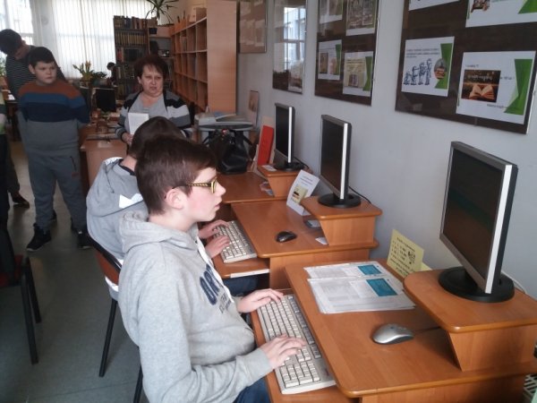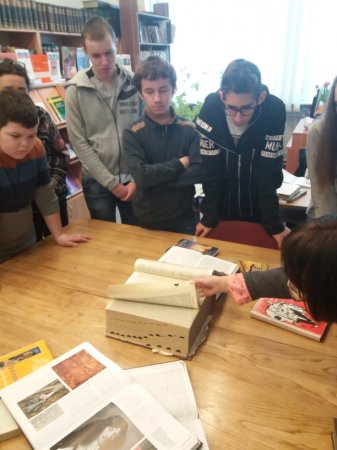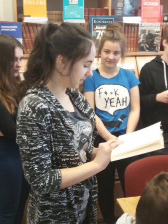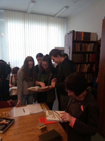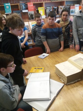 specjalnych potrzebach edukacyjnych uczestniczyli w lekcji bibliotecznej Historia książki. Od papirusu do e-bookazorganizowanej przez Książnicę Pedagogiczną im. Alfonsa Parczewskiego w