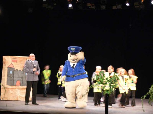 Przedstawienie propagowało bezpieczne zasady poruszania się w drodze do szkoły, informowało dzieci, jak uchronić się przed obcym i nie stać się ofiarą przestępstwa oraz jak bezpiecznie jeździć na rowerze.
