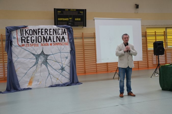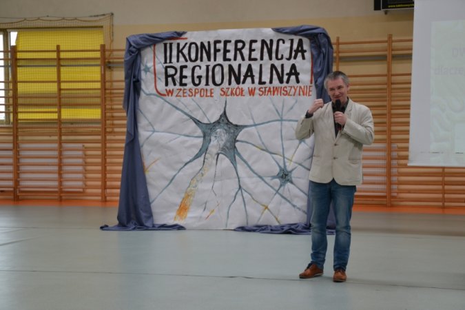 To temat II Konferencji Regionalnej, która odbyła się 25 maja 2017r. w Zespole Szkół w Stawiszynie. Gościem specjalnym konferencji był doktor nauk biologicznych pan Marek Kaczmarzyk z Uniwersytetu Śląskiego, neurodydaktyk, propagator dydaktyki ewolucyjnej, dziedziny zajmującej się wyodrębnieniem, rozpoznaniem i praktycznym wykorzystaniem wpływu mechanizmów ewolucyjnych na procesy uczenia się i nauczania. Został on zaproszony na konferencję przez dyrektor Zespołu Szkół w Stawiszynie Joannę Woszczyk i lidera Wewnątrzszkolnego Doskonalenia Nauczycieli Joannę Kostrzewę. Dwóch wykładów doktora Marka Kaczmarzyka: "Dlaczego trudno zrozumieć nastolatka?" i "Co z tą pamięcią? Neurobiologia zapominania." wysłuchali zaproszeni na konferencję goście: przedstawiciele kaliskiej Delegatury Kuratorium Oświaty w Poznaniu: Violetta Słupianek – dyrektor, Zbigniew Taranek – zastępca dyrektor, starsze wizytator - Marzena Bierła, Elżbieta Czarcińska i Krystyna Liszewska, Burmistrz Gminy i Miasta Stawiszyn Justyna Urbaniak, Aleksandra Bylica, podinspektor do spraw oświaty, dyrektorzy i nauczyciele siedemnastu szkół i przedszkoli z powiatu kaliskiego, ostrowskiego i konińskiego, rodzice uczniów o specjalnych potrzebach edukacyjnych, panie Sławomira Madaj - Gołdyn i Katarzyna Salamon - lekarki z Niepublicznego Zakładu Podstawowej Opieki Zdrowotnej w Stawiszynie.
