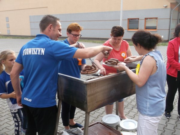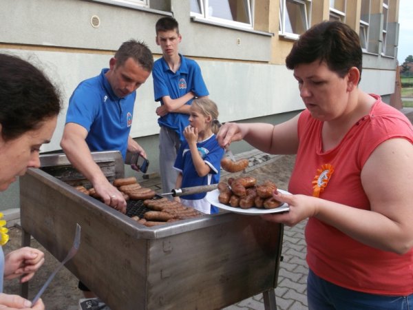 Po sportowych zmaganiach wszyscy posilili się kiełbaską z grilla przygotowaną przez