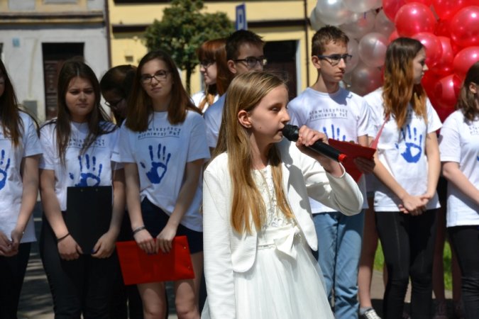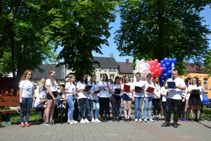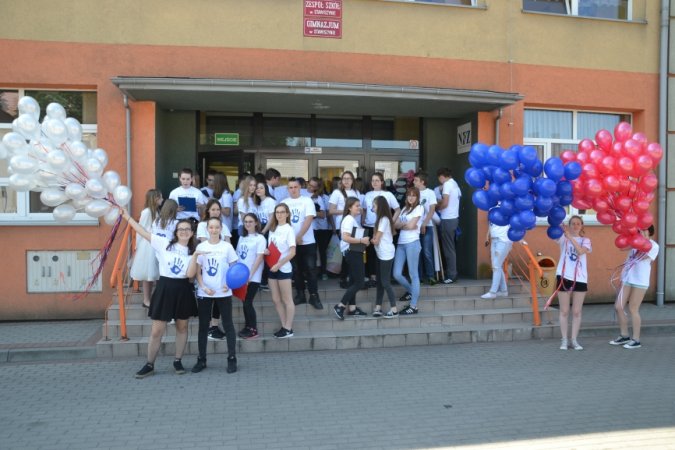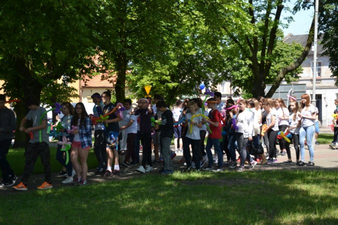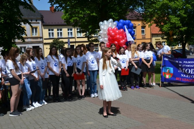 Ostatnim kolorowym akcentem spotkania było wypuszczenie w powietrze balonów w kolorach PaT- u jako symbolu uwolnienia się od zmartwień, problemów, trosk, zagrożeń i uzależnień. Na zakończenie PaTowicze zaprosili wszystkich obecnych na stawiszyńskim rynku do zatańczenia belgijki- ulubionego tańca stawiszyńskich gimnazjalistów.