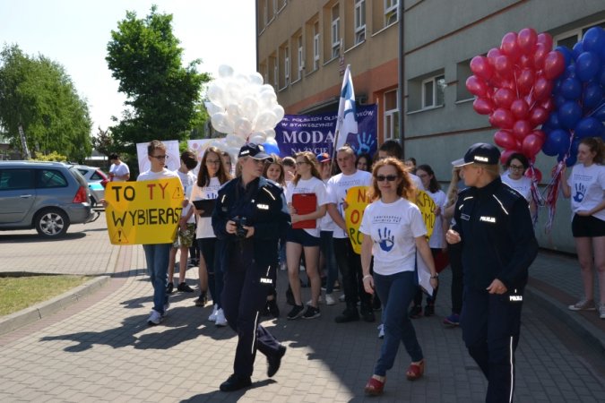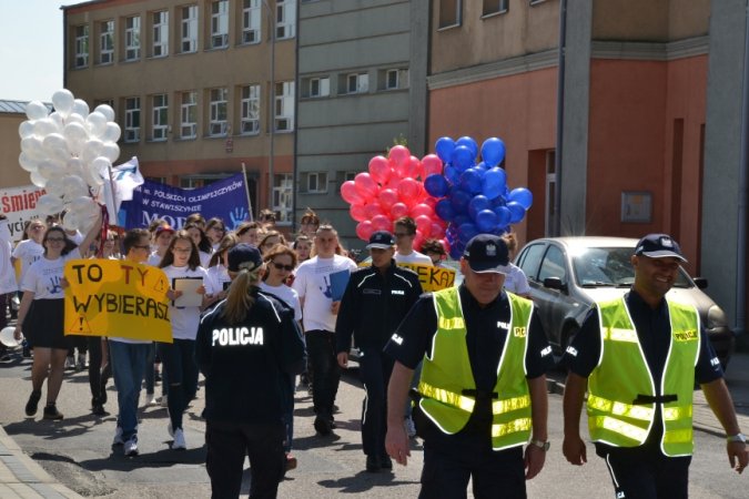 1 czerwca 2017r. grupa „Stawiszyńskich pionierów” PaTPORT-u z opiekunem Agnieszką Roszak-Janowską zorganizowała happening uliczny dla uczczenia Ogólnopolskiego Głosu Profilaktyki. Zaproszenie na spotkanie profilaktyczne przyjęli funkcjonariusze policji z Komendy Miejskiej w Kaliszu – Zespół do spraw Nieletnich: aspirant Monika Rataj, starszy sierżant Agnieszka Olejnik-Mucha. W barwnym pochodzie z transparentami promującymi modę na życie bez uzależnień gimnazjaliści przeszli na stawiszyński rynek. Nad ich bezpieczeństwem podczas przemarszu ulicami miasta czuwali funkcjonariusze z Komisariatu Policji w Stawiszynie. W happeningu na stawiszyńskim rynku wzięli również udział: Sekretarz Gminy i Miasta Stawiszyn- pani Agnieszka Morawska, Przewodnicząca Komisji do spraw Rozwiązywania Problemów Alkoholowych - pani Dorota Karpieko, Pełnomocnik Burmistrza do spraw Profilaktyki i Rozwiązywania Problemów Alkoholowych pani Marzena Juszczak, wicedyrektor szkoły pani Ewa Nowacka, policjanci - Michał Marcinowski i Krzysztof Nowakowski, nauczyciele oraz mieszkańcy Stawiszyna.