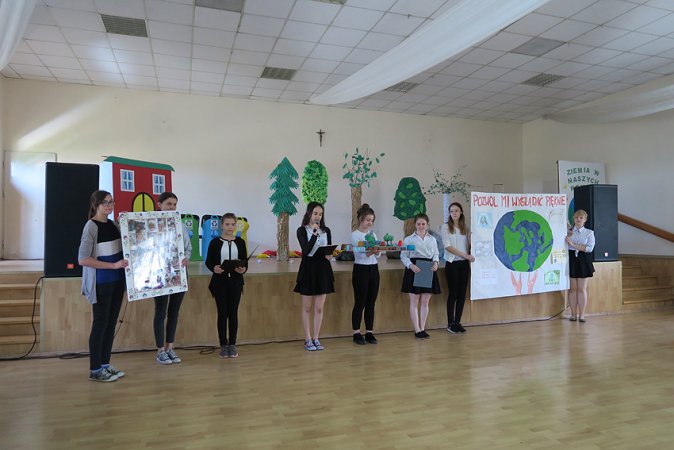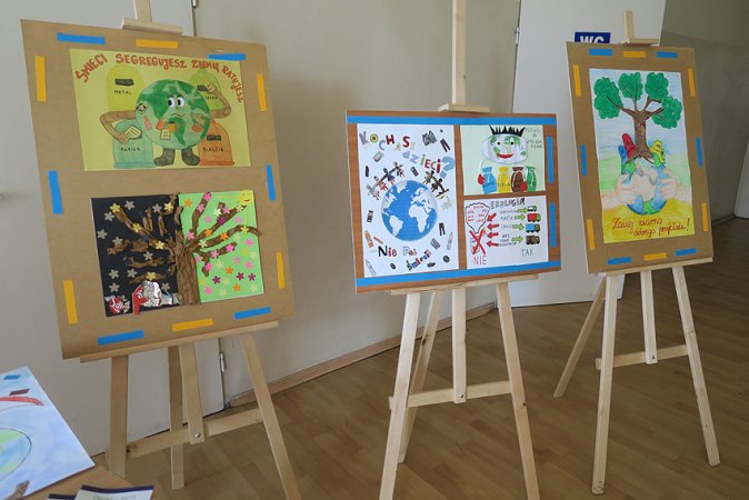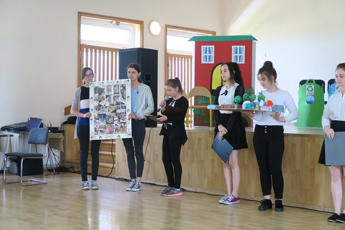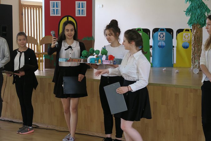 Elwira Chudziak uczennica klasy Va opowiedziała o prowadzonej w szkole edukacji ekologicznej: Rozwój edukacji ekologicznej wśród uczniów naszej szkoły, popularyzacja metod gospodarowania odpadami komunalnymi, prowadzenie selektywnej zbiórki odpadów oraz kształtowanie poczucia odpowiedzialności za środowisko, w którym żyjemy, zostało uwiecznione na zdjęciach z zajęć lekcyjnych. Zbierając makulaturę- ratujemy konie. Z materiałów wtórnych wykonaliśmy zabawki (samochody, roboty). Dzięki zastosowaniu przez nas metody decupage szklane butelki i słoiki stały się kolorowymi wazonami oraz szklanymi pojemnikami. Zbierając zużyte baterie i plastikowe nakrętki, wspieramy ochronę środowiska. Wyżej wymienione działania mobilizują nas do twórczego myślenia o recyklingu, uświadamiają nam i utrwalają zachowania proekologiczne. Jesteśmy młodymi ludźmi wrażliwymi na piękno przyrody.