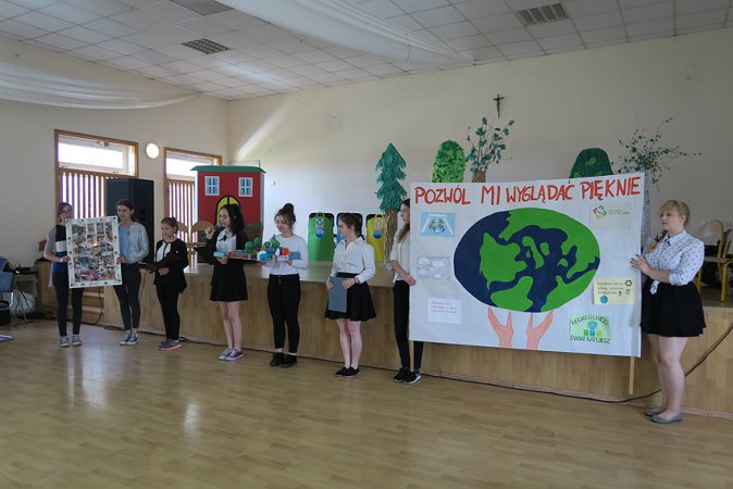 Podczas obrad gimnazjaliści omówili przygotowany baner: Pozwól mi wyglądać pięknie. Znajduje się na nim planeta Ziemia oraz podtrzymujące ja ludzkie dłonie. Obraz ten symbolizuje to, że ziemia jest w naszych rękach i to od nas zależy, jak będzie wyglądać. O tym, czy będzie piękna, musimy zdecydować sami. Chcemy uświadomić ludziom, że każdy człowiek ma wpływ na wygląd otaczającego nas świata .