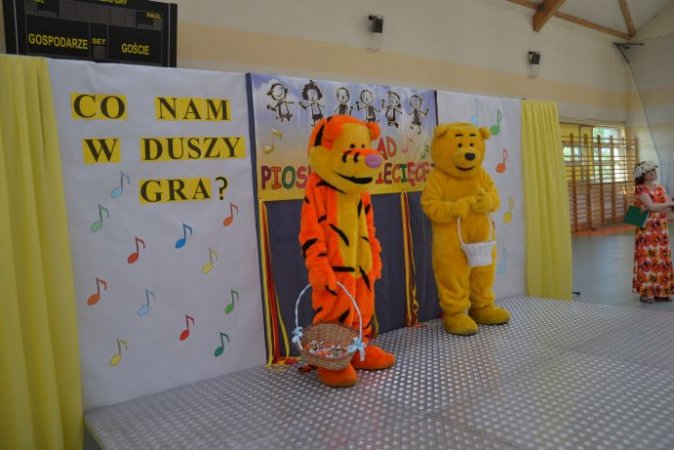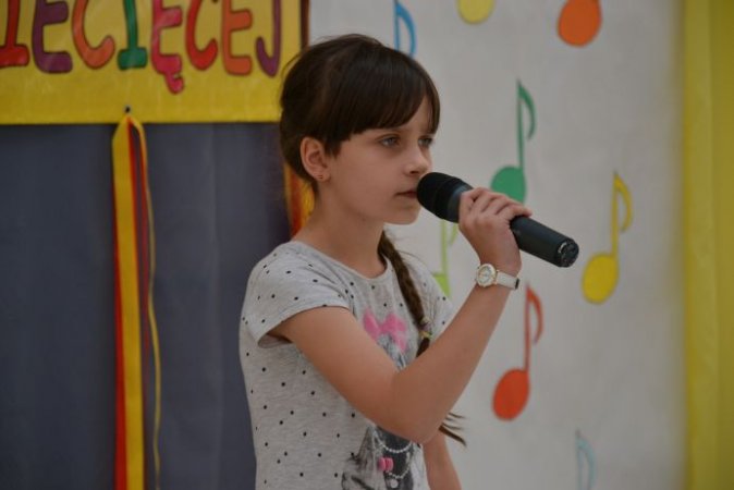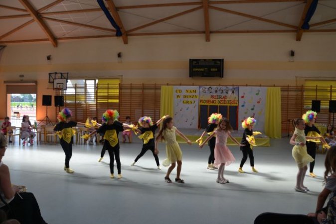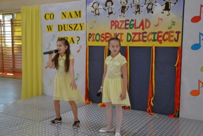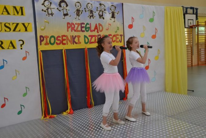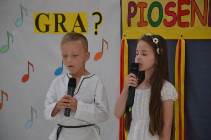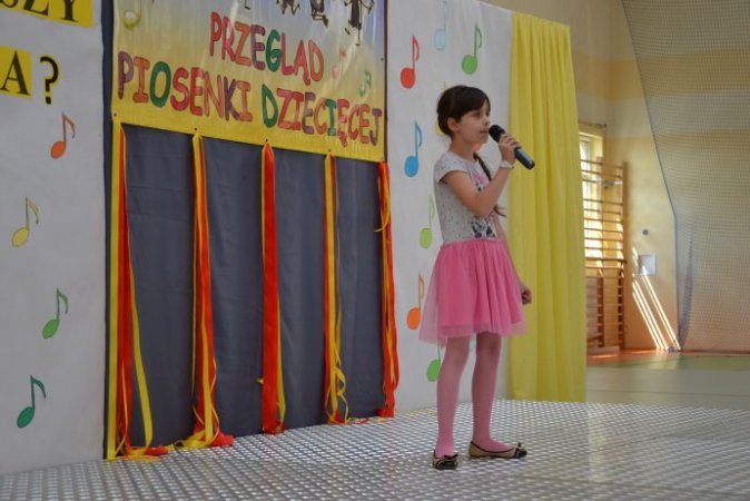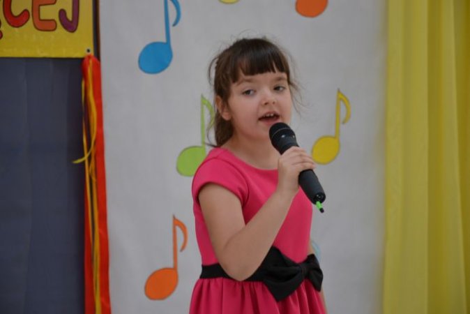 klucza do drzwi, które poprowadzą ją do kariery. Jagoda Janiszewska ze Szkoły w Piotrowie opowiedziała piosenką Jesteśmy Jagódki o smacznych jagódkach, które mają rączki i nóżki. Piosenkę Moja planeta o cierpliwej przyjaźni i ziemi pełnej miłości zaśpiewała Iga Wawrzyniak z Zespołu Szkolno – Przedszkolnego w Kościelcu. Język angielski rzec można już obowiązkowy, uczysz się słownictwa, właściwej wymowy…, dlatego też uczennice ze Szkoły w Zbiersku Nikola Tomasik oraz w duecie Rozalia Piątkowska i Cornelia Andrzejak w tym języku zaprezentowały się wokalnie. Piosenka Żyj do przodu w wykonaniu duetu Oliwia Bangrowska i Zuzanna Antczak Nowak ze Szkoły w Stawiszynie dodała skrzydeł, bo przecież świat jest wspaniały. Różowa piosenka w wykonaniu Agnieszki Biedki z Zespołu Szkół w Russowie to zachęta, by spojrzeć na świat przez różowe okulary. Nieodłączna para rytm i melodia - piosenkę pod takim tytułem zaśpiewała Marta Wawrzyniak, a jej koleżanka Aleksandra Przybyszewska z Zespołu Szkolno-Przedszkolnego w Kościelcu opowiedziała o drewnianych lalkach będących uciechą dla dzieci. Przyjaźń sprawia, że świat jest kolorowy, co potwierdziły piosenką Zostań moją przyjaciółką Nikola Kazimierczak i Julia Michałek ze Szkoły w Stawiszynie.