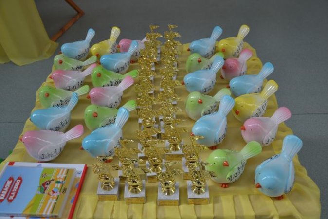 Wszyscy uczestnicy przeglądu otrzymali dyplomy, pamiątkowe nutki i śliczne, kolorowe stawiszyńskie słowiki oraz nagrody rzeczowe. To był piękny muzyczny popis wokalnych talentów najmłodszych, wzbogacony prezentacją układów choreograficznych oraz wizytą pluszowych żywych maskotek.