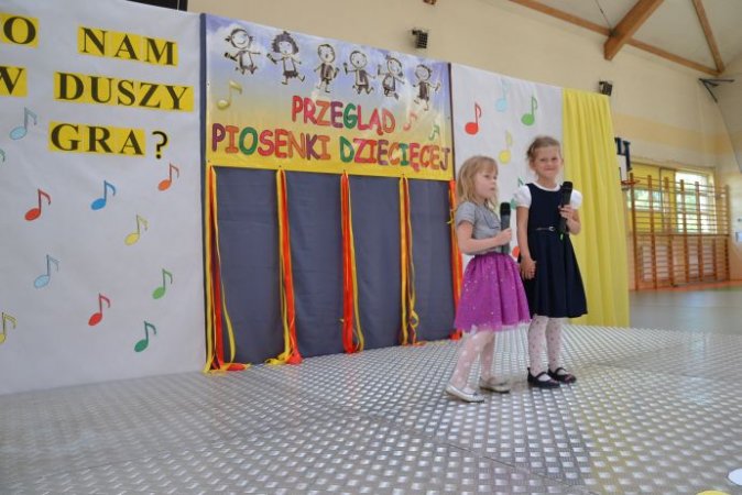 Co nam w duszy gra pod takim hasłem w dniu 8 czerwca 2017r. odbył się Międzygminny Przegląd Piosenki Dziecięcej, nad którym honorowy patronat objęła burmistrz Stawiszyna – pani Justyna Urbaniak. To wyjątkowe wydarzenie muzyczne jest wspólną inicjatywą Publicznego Przedszkola Samorządowego w Stawiszynie z filią Petryki oraz Zespołu Szkół w Stawiszynie. Prowadzące przegląd nauczycielki Jolanta Ciesielska i Agnieszka Korycka rozpoczęły koncert słowami: dziś będą tu śpiewali i ci duzi, i ci mali, a zaproszeni goście stworzyli niezwykłą orkiestrę improwizującą niepowtarzalne rytmy. Scena stała się miejscem pokazania umiejętności wokalno - muzycznych najmłodszych, konfrontacji własnych umiejętności z innymi wykonawcami, ale przede wszystkim miejscem integracji dzieci i nauczycieli z różnych placówek przedszkolnych i szkolnych. Melodie i słowa piosnek opowiedziały o tym, co dzieciom w duszy gra.