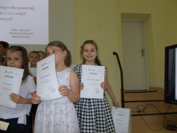 7 czerwca 2017 roku w Ośrodku Doskonalenia Nauczycieli w Kaliszu odbył się XII Powiatowy Konkurs Recytatorski dla uczniów klas I-III szkół podstawowych. Udział w konkursie powiatowym poprzedzony był wyborem najlepszych recytatorów na szczeblu gminnym.