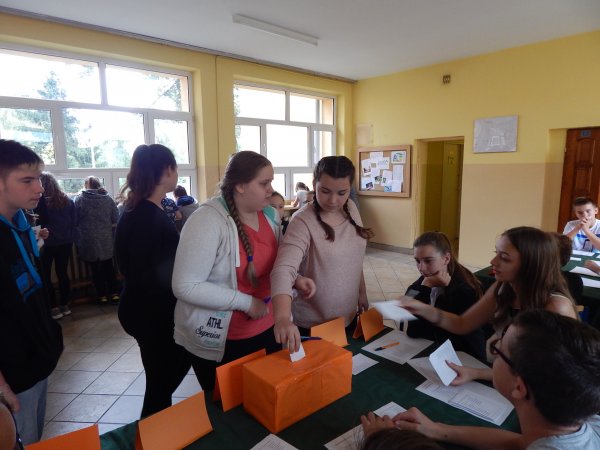 mógł oddać głos na wybranego kandydata, zaznaczając swój wybór na karcie do głosowania. Komisja wyborcza złożona z przedstawicieli klas IV-VII i klas