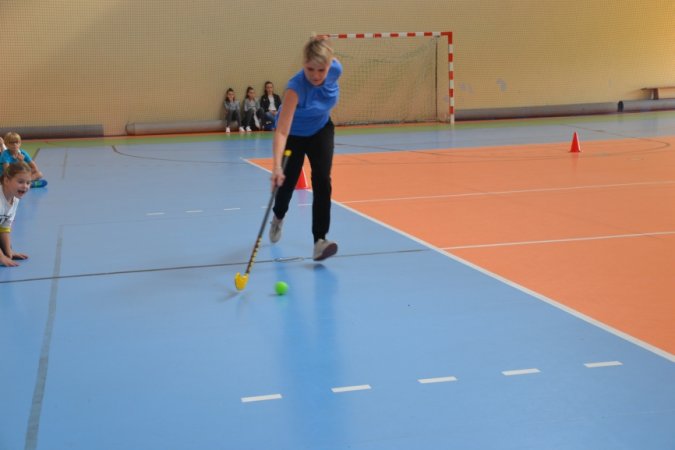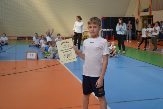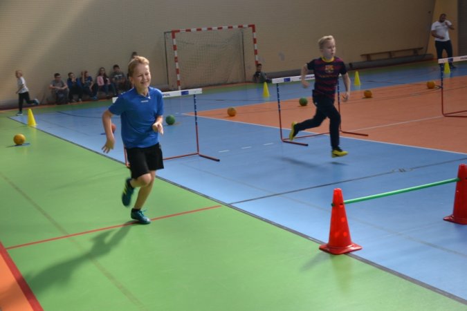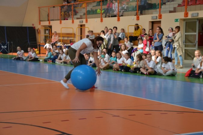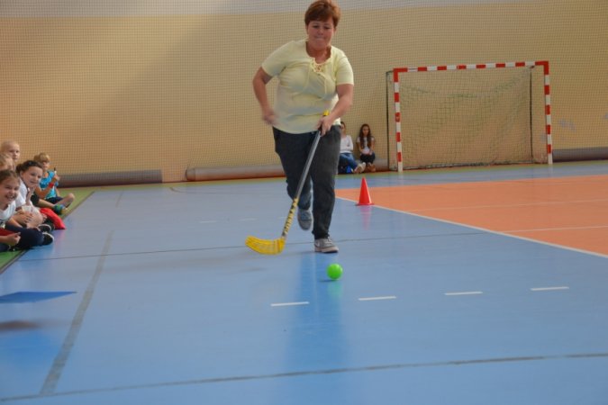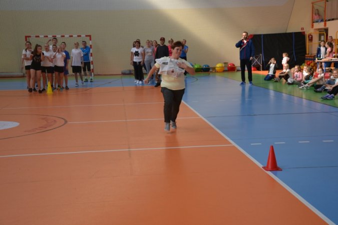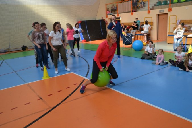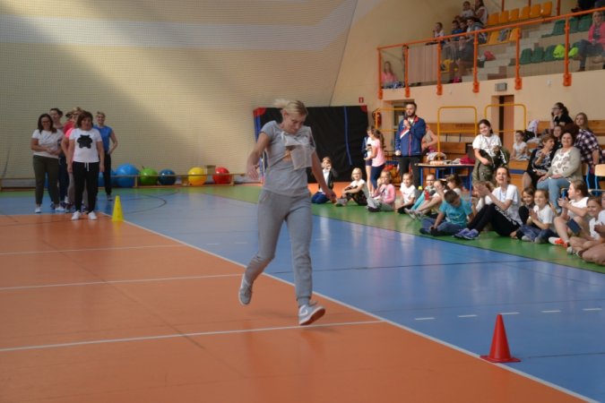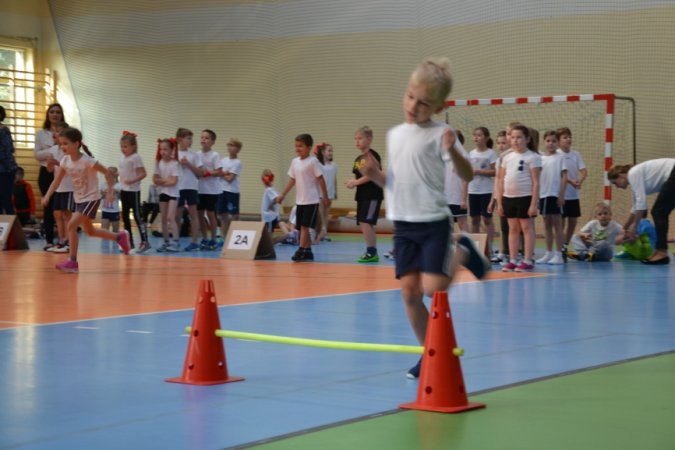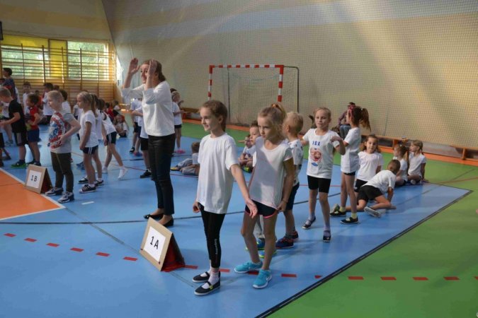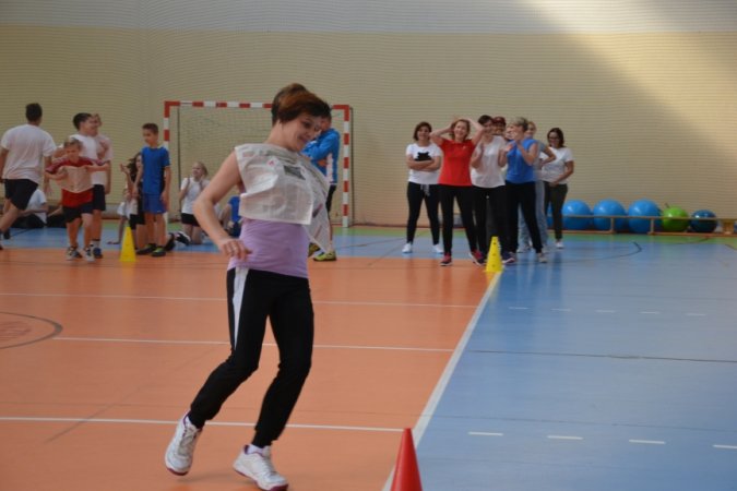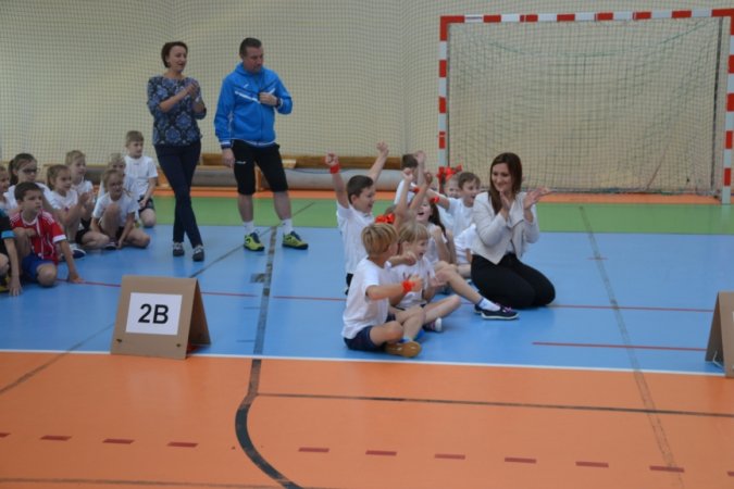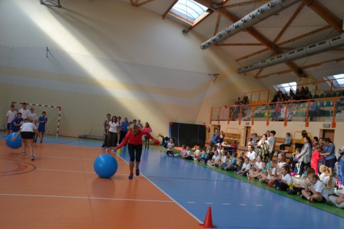 Jesienny festyn miał charakter sportowy. Nauczyciele wychowania fizycznego przygotowali konkurencje rozgrywane w wyścigach rzędów. Jako pierwsi wystartowali nasi najmłodsi sportowcy – uczniowie klas I-III. Pierwszoklasiści ani na krok nie ustępowali swoją walecznością i sprawnością uczniom z klas starszych, a w wykonywaniu ćwiczeń byli nawet dokładniejsi niż ich starsi koledzy. Swoje pociechy głośno dopingowali rodzice licznie zebrani na trybunach.