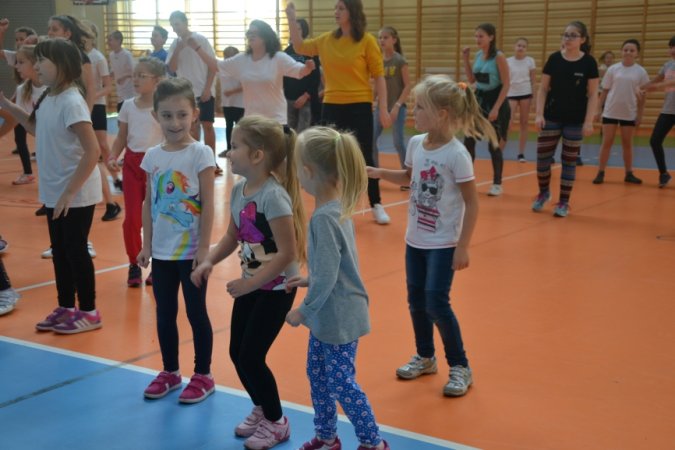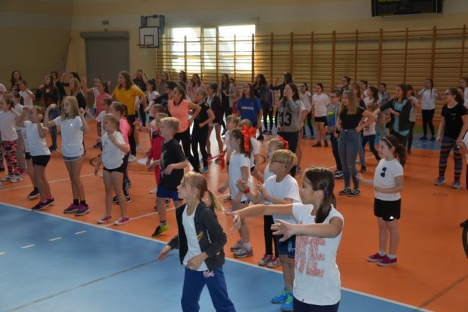 W przerwie sportowych zmagań swoje umiejętności taneczne zaprezentowali uczniowie, którzy na ochotnika, licznie wzięli udział w zumbie przygotowanej przez nauczycielki wychowania fizycznego.