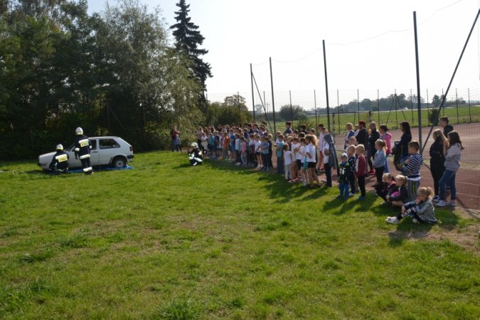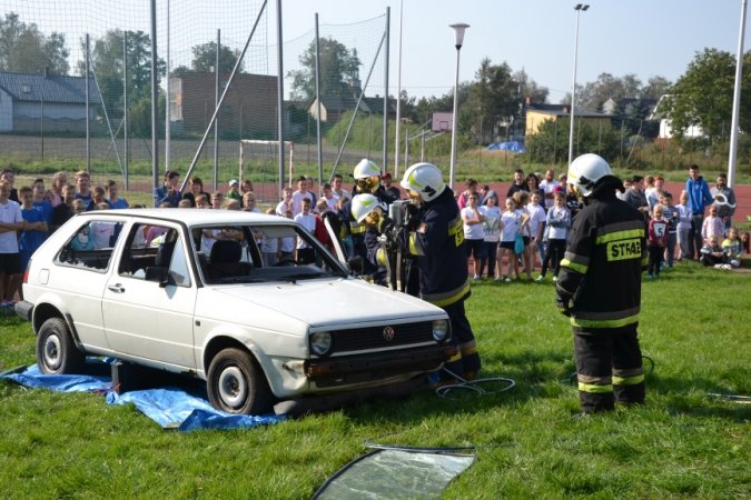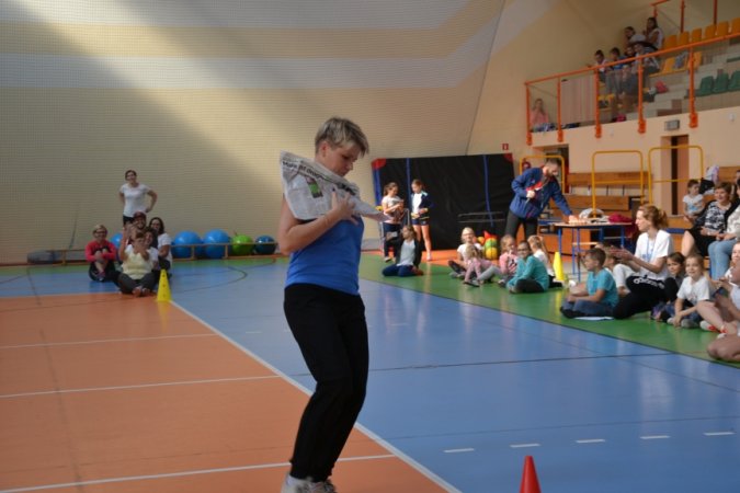 Kolejną atrakcją tegorocznego festynu był pokaz straży pożarnej oraz pogotowia. Ratownicy medyczni naszym uczniom sprzęt do ratownictwa, jakim dysponują w swojej codziennej pracy. Na koniec festynu do rywalizacji z uczniami klas siódmych zaprosiliśmy chętnych rodziców, dla których również mieliśmy przygotowane konkurencje sportowe, tym razem na wesoło. Rodzice podczas wykonywania poszczególnych ćwiczeń zaprezentowali wiele różnych technik, o istnieniu których wielu z nas nawet się nie śniło J. Nie było przegranych, wszyscy wygrywali, bo najważniejsze to humor i dobra zabawa.