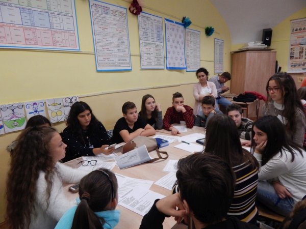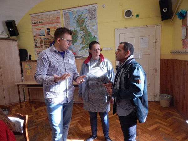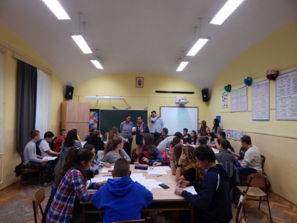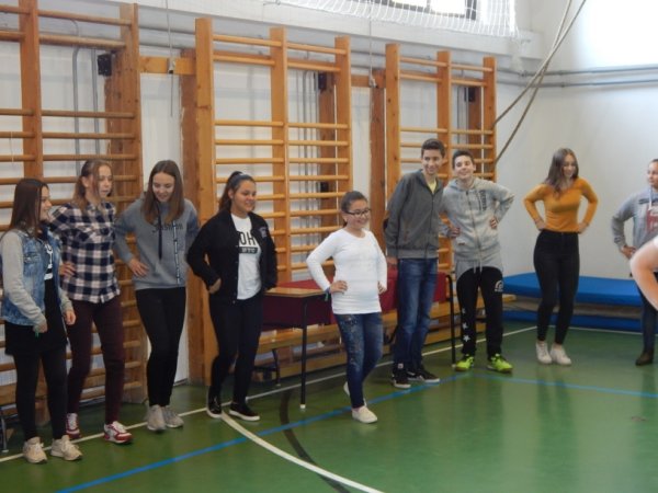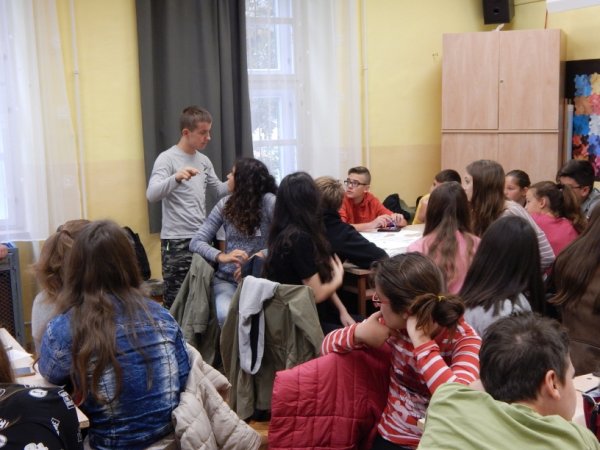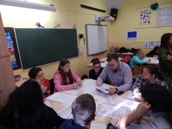 Pierwszego dnia, w ramach ceremonii powitalnej wysłuchaliśmy przemówienia dyrektora szkoły Roberta Toroka, który dziękując za przybycie, wyraził ogromną satysfakcję z dotychczasowej współpracy szkół partnerskich i przedstawił program nadchodzącego tygodnia. Gościem ceremonii powitalnej był także pan Istvan Sagi, członek Komisji Edukacji, Nauki i Badań Naukowych, który mówiąc o nawiązanym partnerstwie i wspólnych przedsięwzięciach, zaproponował i wyraził chęć kontynuacji współpracy nad kolejnym projektem w ramach Erasmus+. Gospodarze zadbali również o część artystyczną wydarzenia, w trakcie której mieliśmy okazję wysłuchać krótkich koncertów oraz poćwiczyć węgierskie tańce ludowe. Po krótkiej przerwie nadszedł czas na rozpoczęcie pierwszej fazy działań projektowych, w których uczniowie, podzieleni na trzy grupy, zbierali pomysły do napisania wstępu do finalnej, międzynarodowej opowieści. Nauczyciele uczestniczyli w warsztatach dotyczących kreacji, pisania i redagowania opowiadania przeprowadzonych przez Julię Saunders. Dzień dopełniły wizyty w Domu Kultury oraz Szkole Muzycznej w Turkeve.