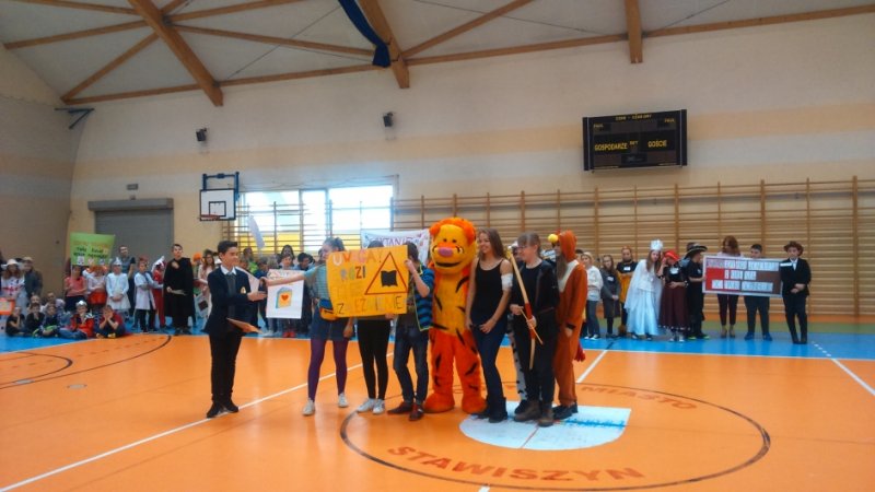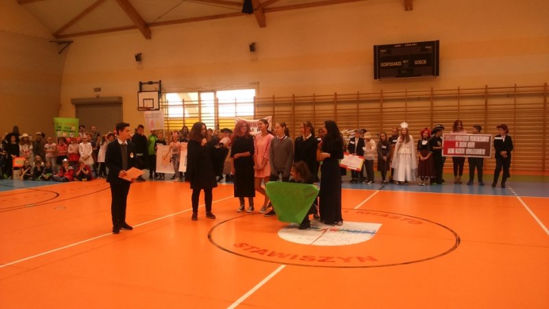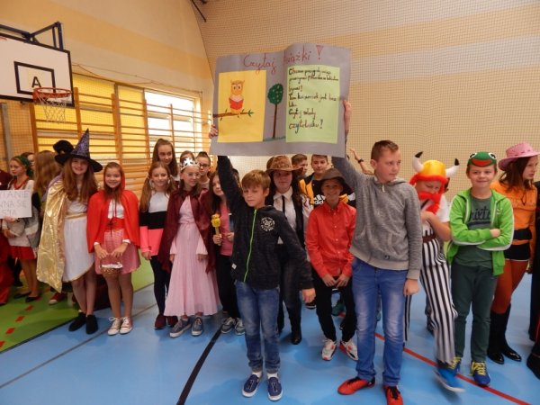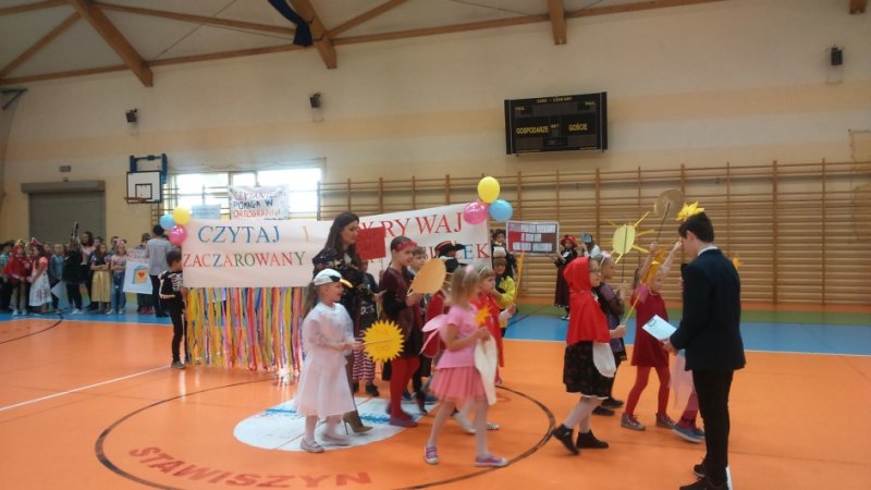 - myśl Wisławy Szymborskiej stała się mottem happeningu czytelniczego, który odbył się w stawiszyńskiej szkole 23 października 2017r., a miał na celu podkreślenie wartość książki i popularyzację czytania. Uczniowie przebrali się za postaci z książek i przygotowali transparenty z hasłami promującymi czytanie. Z powodu niesprzyjającej aury barwny korowód przeszedł korytarzami szkoły, a następnie udał się do hali sportowo-widowiskowej, gdzie odbyła się prezentacja. Wśród książkowych postaci rozpoznać można było m.in. śliczne księżniczki, czerwonego i „zielonego” kapturka, kota w butach, Asterixa, Pippi, piratów, rycerzy. Byli także nauczyciele i uczniowie Hogwartu, czyli bohaterowie uwielbianego przez wszystkich cyklu powieści „Harry Potter”, ale do naszej zawitała także Jagna bohaterka powieści „Chłopi” Władysława Reymonta. Nie sposób wymienić wszystkich książkowych ulubieńców.