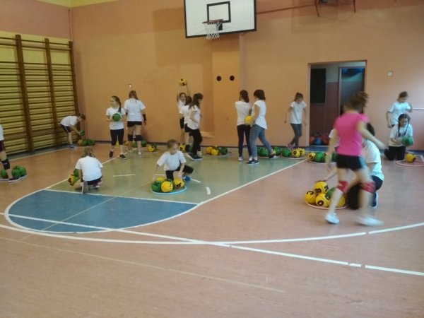 Dzieci w wieku wczesnoszkolnym mają ogromną potrzebę ruchu i często trudno zatrzymać je w ławkach przez większość dnia w szkole. Kompromisowym rozwiązaniem jest nauczanie treści humanistycznych i matematycznych poprzez ruch. Wykorzystując fakt, że aktywność ruchowa z piłką jest ulubioną formą zabawową naszych uczniów, nauczyciele wychowania fizycznego przeprowadzili cykl lekcji z eduballami w klasach I – IV szkoły podstawowej.