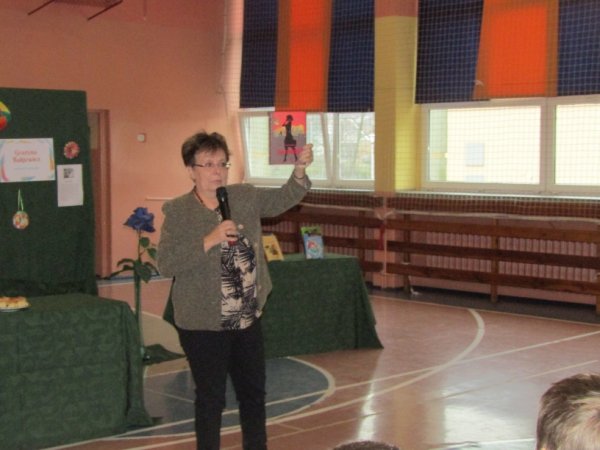 Uczniowie klas VII i II gimnazjum mieli okazję spotkać się 16 listopada 2017r z panią Grażyną Bąkiewicz - historykiem, pedagogiem, autorką książek dla dzieci i młodzieży. Za swoją twórczość uzyskała wiele prestiżowych nagród i wyróżnień. Jest laureatką I nagrody IBBY. Powieść autorki ,, O Melba!” została uznana książką roku 2002, a ,,Stan podgorączkowy” i ,,Będęu Klary” nominowane były do nagrody IBBY.
