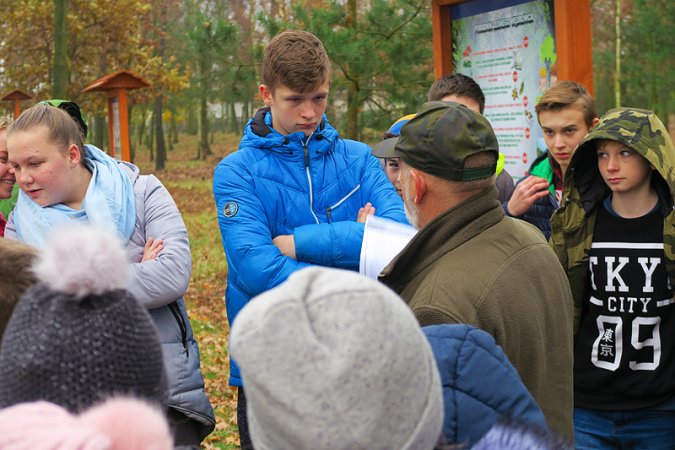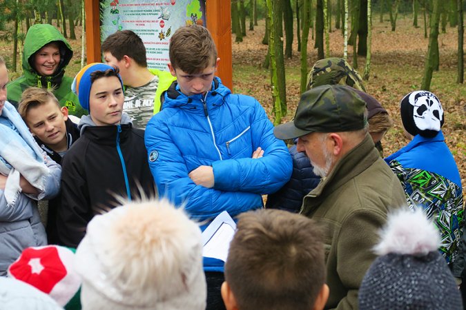 terenie, którą przeprowadził leśniczy Nadleśnictwa Grodziec pan Ireneusz Mućka. Zajęcia dotyczyły m.in. tego jak zbudowana jest budka, jaki