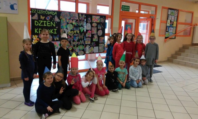 W tym dniu uczniowie klas pierwszych przebrali się za kolorowe kredki,
