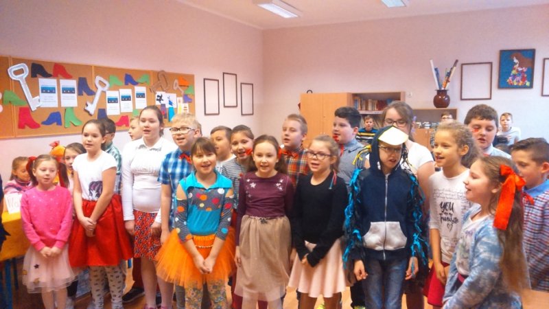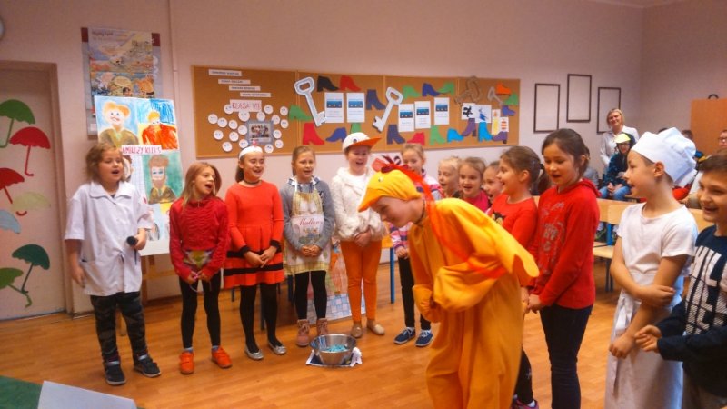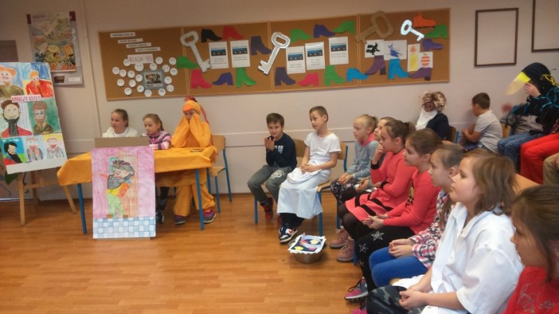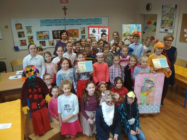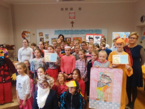 Klasy czwarte wykazały się niezwykła pomysłowością w wykonaniu konkursowych zadań. Przygotowały portret pana Kleksa i piosenkę z filmu. Na pytania ze znajomości treści książki odpowiadały trzy osoby wytypowane przez wychowawcę klasy.