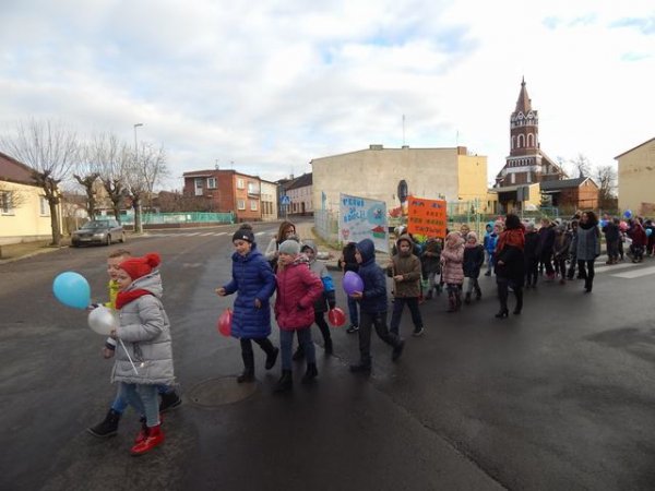 dzień 20 listopada jest dniem wyjątkowym dla uczniów i nauczycieli stawiszyńskiej szkoły. Rozśpiewany pochód z transparentami i balonami zatrzymał się przed budynkiem Urzędu Gminy i