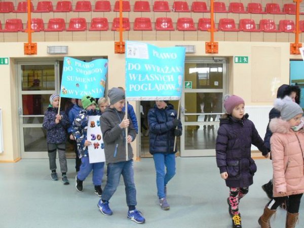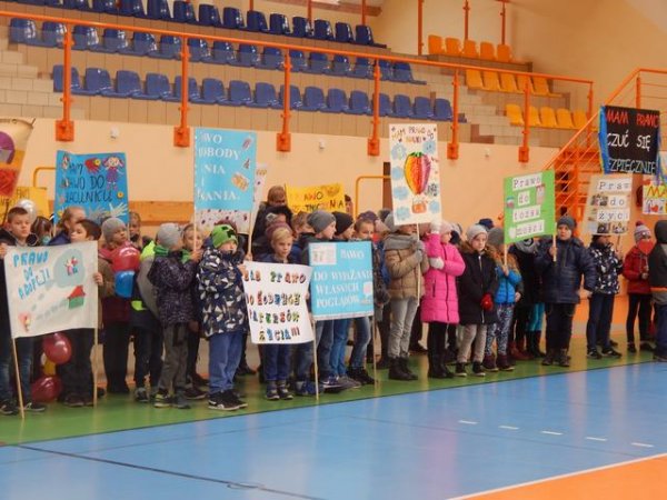 dniu tym szkolne korytarze i gazetki klasowe zdobiły przygotowane wcześniej przez uczniów prace plastyczne i plakaty, propagujące prawa dziecka i