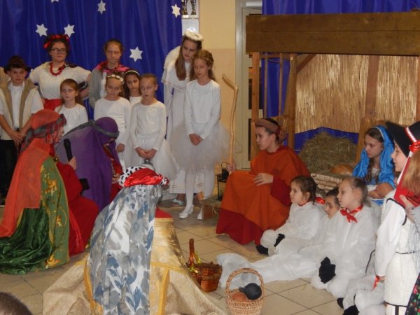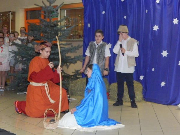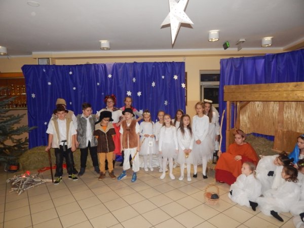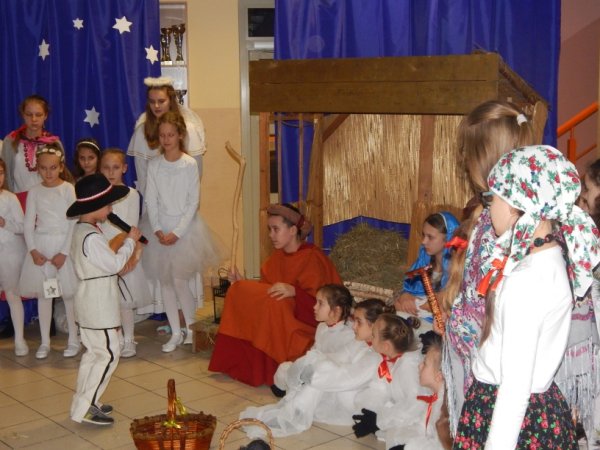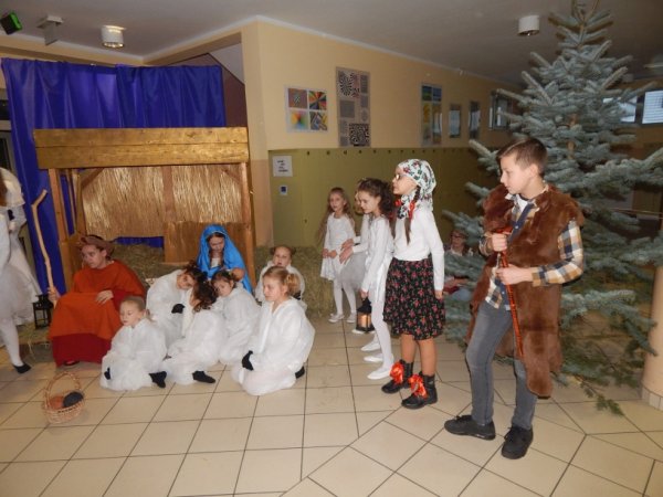 grudnia 2017r. odbyło się tradycyjne spotkanie świąteczne, w którym razem z nauczycielami i pracownikami stawiszyńskiej szkoły uczestniczyła pani Justyna Urbaniak Burmistrz Stawiszyna. Jasełka, przygotowane przez uczniów pod