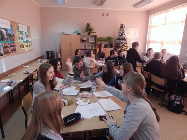 Potem, po wyjaśnieniu zasad, uczniowie przystąpili do pisania historii, pracując metodą projektu. Po kilku godzinach twórczej pracy powstały trzy historie. Kolejny etap to edycja tekstów i głosowane na najlepszą historię. Głosowanie było bardzo wyrównane, co świadczy o ogromnej kreatywności uczniów w tworzeniu opowiadań. Ostatecznie wyłoniono opowiadanie grupy I, które tym samym będzie częścią międzynarodowej wspólnej historii.