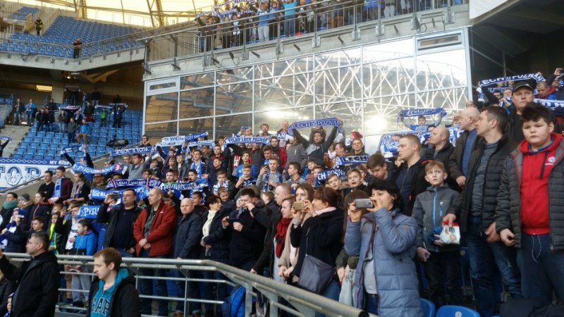 wszyscy uczestnicy wycieczki wiernie kibicowali Lechowi. Atmosfera podczas