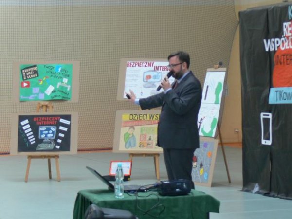 13 marca 2018 roku w Szkole Podstawowej im. Wincentego Pola w Stawiszynie odbyła się III Konferencja Regionalna "Współczesna szkoła: internetowo bezpieczna, TIKowo skuteczna". Konferencja regionalna to coroczna inicjatywa dyrektor szkoły Joanny Woszczyk i liderki Wewnątrzszkolnego Doskonalenia Nauczycieli Joanny Kostrzewy. W tym roku podczas konferencji rozmawialiśmy o bezpieczeństwie w sieci i o kreatywnym wykorzystaniu narzędzi internetowych. Konferencję otworzyła dyrektor Joanna Woszczyk, witając przybyłych gości. Gośćmi specjalnymi konferencji byli dr Sławomir Postek z Akademii Pedagogiki Specjalnej w Warszawie, Anna Świć - trenerka Mistrzów Kodowania i autorka programu "Kodowanie na dywanie", członkini grupy Superbelfrzy.pl oraz Rafał Mitkowski - prezes zarządu Edu Sense Sp. z o.o. propagujący wykorzystanie robotów - ozobotów w edukacji. Dyrektor szkoły powitała również przedstawicieli kaliskiej Delegatury Kuratorium Oświaty w Poznaniu, panią Aleksandrę Bylicę - podinspektor do spraw oświaty, dyrektorów i nauczycieli szkół i przedszkoli z powiatu kaliskiego, ostrowskiego i konińskiego z województw wielkopolskiego, łódzkiego i kujawsko - pomorskiego, panie: Sławomirę Madaj - Gołdyn i Katarzynę Salamon - lekarki z Niepublicznego Zakładu Podstawowej Opieki Zdrowotnej w Stawiszynie. Konferencję rozpoczął dr Sławomir Postek niezwykłym wykładem: "Co czyha w sieci na młodych ludzi? Bardziej lub mniej zmyślone niebezpieczeństwo". Po poczęstunku uczestnicy konferencji udali się do sal, w których odbywały się warsztaty, każdy uczestnik konferencji uczestniczył w dwóch z trzech proponowanych warsztatów: pani Anna Świć prowadziła warsztat "Kodowanie na dywanie - programowanie dla nauczycieli edukacji wczesnoszkolnej", pan Rafał Mitkowski prowadził warsztat "Robotyka i programowanie w klasach IV - VII", pani Joanna Kostrzewa prowadziła warsztat "Rozszerzona rzeczywistość w praktyce szkolnej", pokazując bezpłatne narzędzia i aplikacje w Internecie służące rozszerzaniu rzeczywistości na różnych przedmiotach, jak również zaprezentowała "Małego Księcia" wydawnictwa Galaktyka i grę "Professor Why Chemia" służące nauczaniu w rzeczywistości rozszerzonej. Po warsztatach w każdej grupie odbyło się losowanie nagród związanych tematycznie z warsztatami.