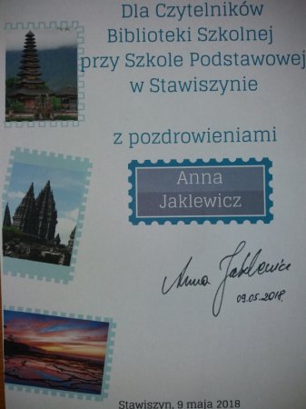 9 maja 2018r. uczniowie klasy III b wraz z wychowawcą Iwoną Osajdą i nauczycielem bibliotekarzem Joanną Zawodnią-Idziakuczestniczyli w ciekawym spotkaniu z panią Anną Jaklewicz. Dzięki uprzejmości Dyrektor Biblioteki Publicznej w Stawiszynie pani Elżbiety Sip trzecioklasiści przenieśli się wegzotyczny świat Indonezji uchwycony obiektywem pani Anny Jaklewicz- podróżniczki, archeologa, antropologa. Kontynuacją spotkania były warsztaty. Tworząc wielobarwne naszyjniki Toradżów nasi podopieczni musieli się wykazać inwencją twórczą.