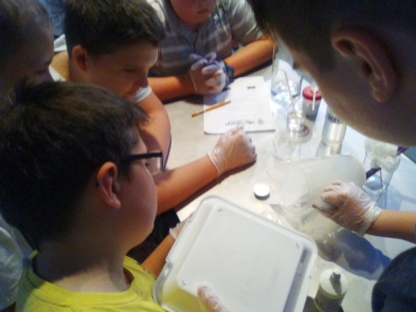 ekscytujące okazały się warsztaty naukowe w Eksperymentarium, podczas których uczniowie na chwilę zostali chemikami i przeprowadzali ciekawe doświadczenia chemiczne.