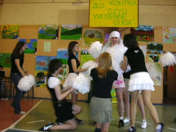 Tradycją stawiszyńskiej szkoły stały się coroczne obchody Pierwszego Dnia Wiosny, w czasie których zarówno uczniowie jak i nauczyciele świętują nadejście wiosny. W tym roku szkolnym uroczystości przebiegały pod hasłem „ Dobro kontra zło, czyli wiosenne cuda”. Wszystkie klasy spotkały się w sali gimnastycznej, gdzie dyrektor szkoły p. Joanna Woszczyk powitała wszystkich uczniów i życzyła wspaniałej zabawy. Gwoździem programu był I Szkolny Turniej „Tańca z gwiazdami”, w którym pary nauczycielskie i uczniowskie zmagały się z tańcami standardowymi i latynoamerykańskimi, walcząc o przechodnie trofeum „kryształową kulę”. Największym uznaniem uczniów cieszył się pokaz tańca dowolnego, czyli free style, który spotkał się z gorącym aplauzem publiczności. Jak co rok, uczniowie chętnie zgłosili się do wielu konkursów i pokazów. Wybieraliśmy najlepszy plakat o tematyce wiosennej a także najciekawsze przebranie, za które wręczaliśmy pamiątkowe dyplomy. Uczennice Szkoły Podstawowej jak i Gimnazjum zaprezentowały się w tanecznych układach wg własnej choreografii. „Śmiech to zdrowie”. Uczniowie przygotowali kabareton i mini playback show, w których zaprezentowali swoje umiejętności wokalne i aktorskie. Nad organizacją i przebiegiem imprezy czuwał Samorząd Uczniowski pod kierunkiem p. Aleksandry Wojciechowskiej i p. Moniki Malinowskiej. |